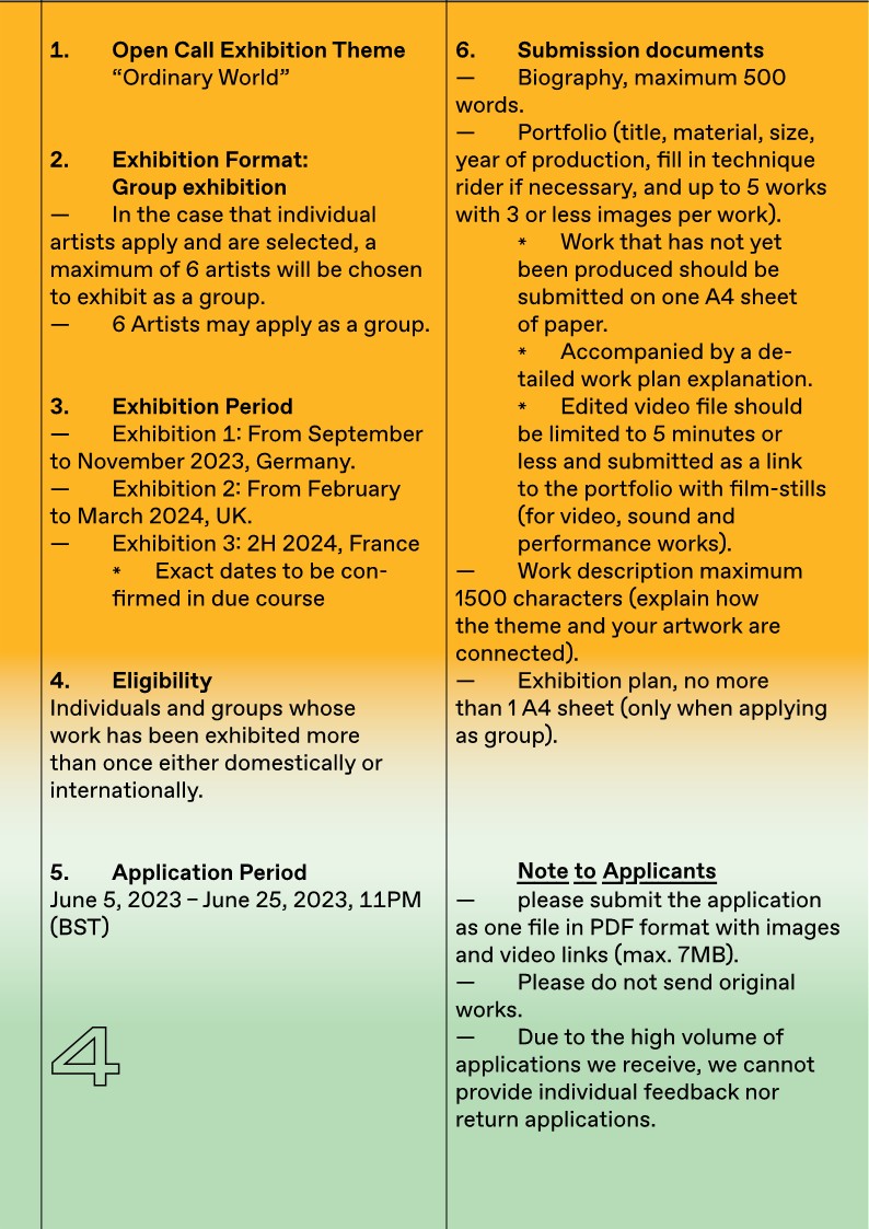 The Korean Cultural Centres in the Germany, UK and France are offering artists an opportunity to exhibit in our gallery spaces.