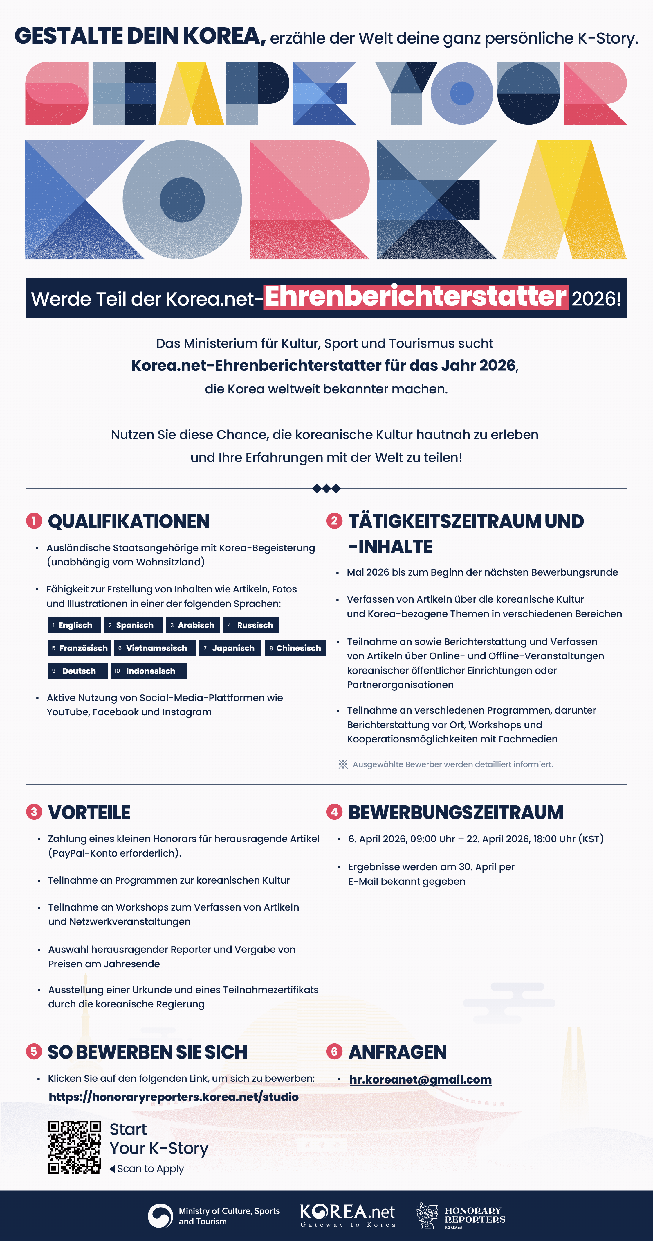 Nutzen Sie diese Chance, die koreanische Kultur hautnah zu erleben und Ihre Erfahrungen mit der Welt zu teilen!
